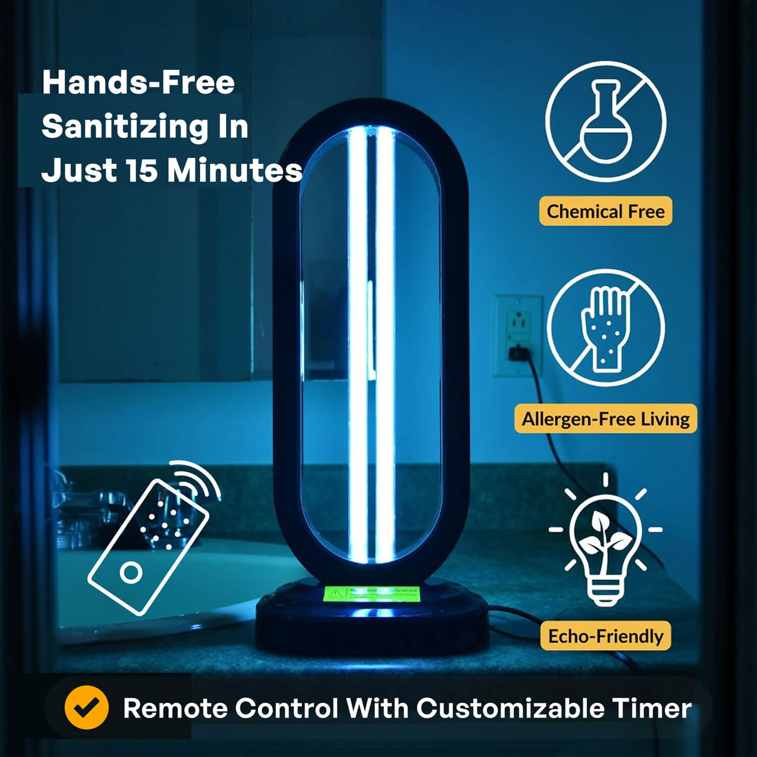 The UVC lamp kills germs and bacteria by destroying its DNA. Meanwhile, oxygen is bonded together to create ozone, leaving behind a refreshing scent that neutralizes odors.