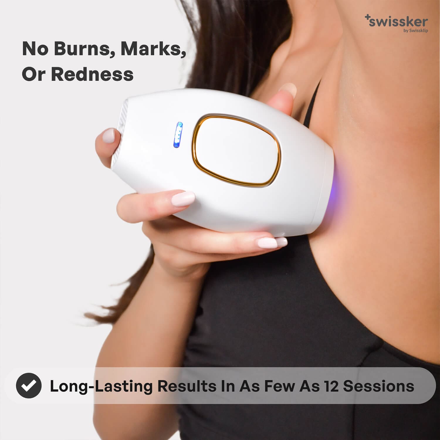 This IPL technology removes hair follicles by destroying them at the root, without affecting your sensitive skin.
