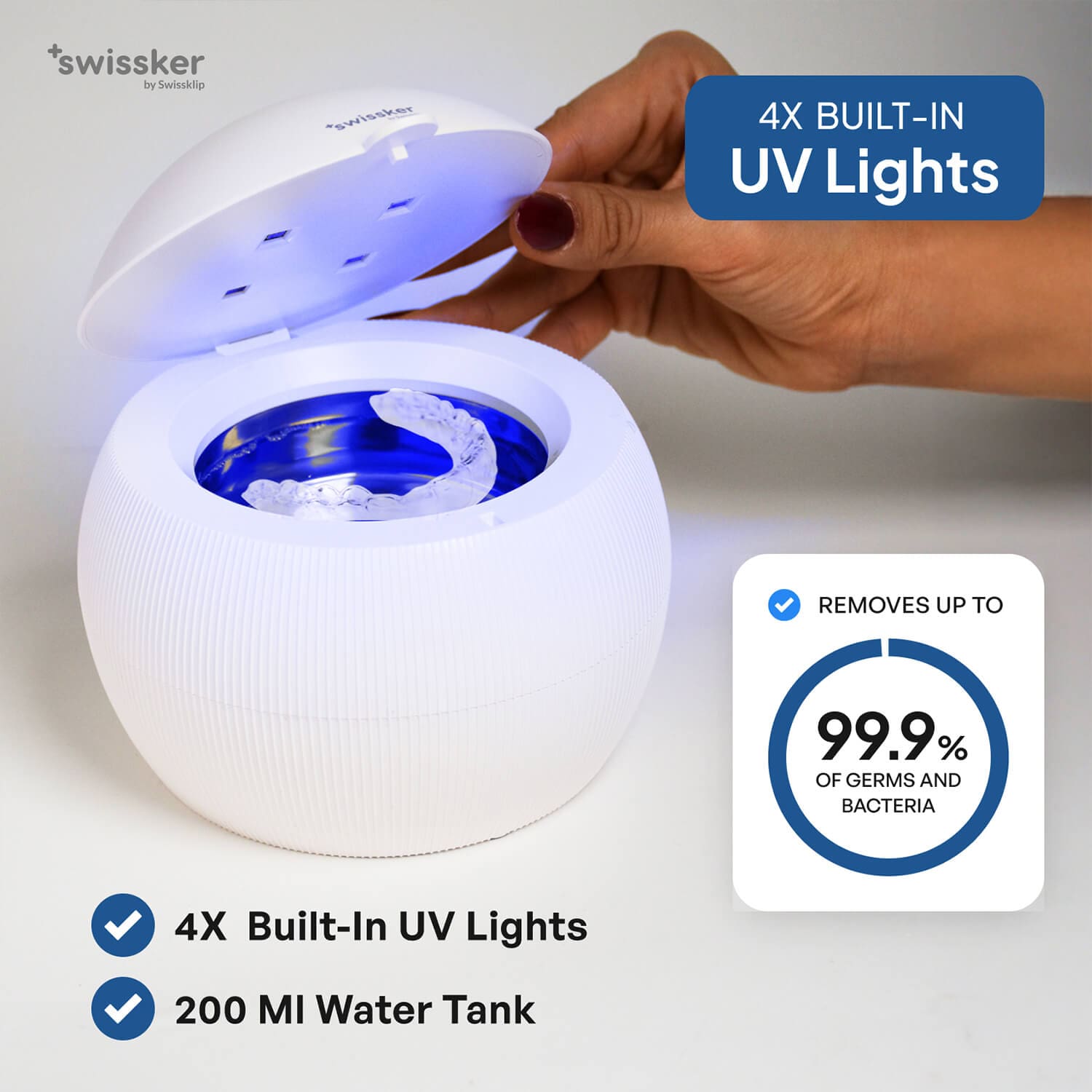 • UV Light Sanitizer: powerful and natural UV light kills germs, bacteria, and fungi in minutes.