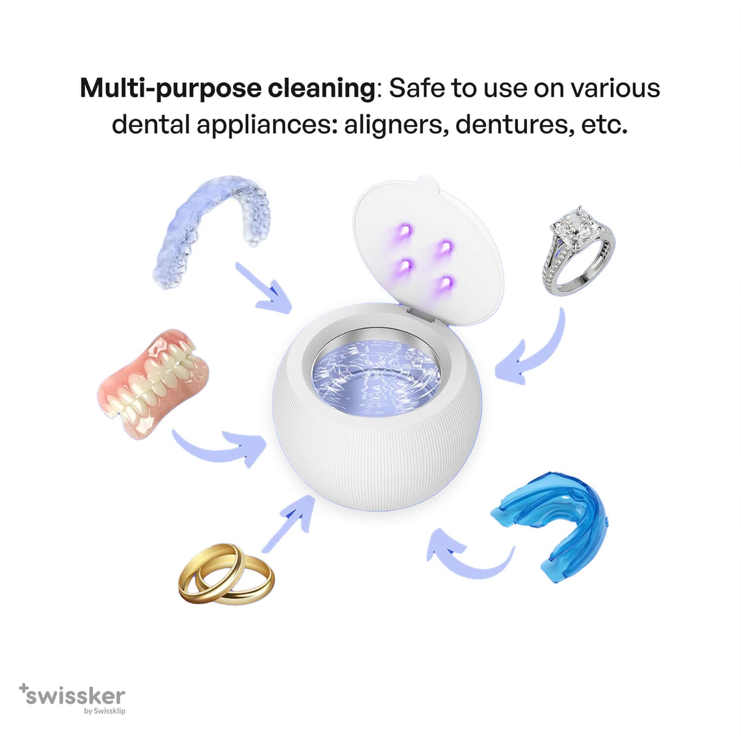 • Multi-Purpose Dental Care Solution: cleans dentures, retainers, mouthguards, and more.
